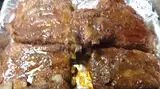 - Step 5:Transfer ribs from the slow cooker to a baking sheet; discard onion and garlic. Coat ribs with barbeque sauce. Dotdash Meredith Food Studios